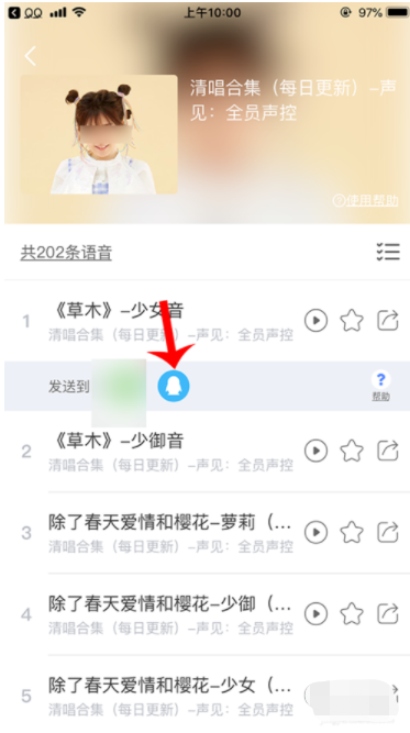 3、选择喜爱的语音包打开,点击喜爱的选项空白位置。