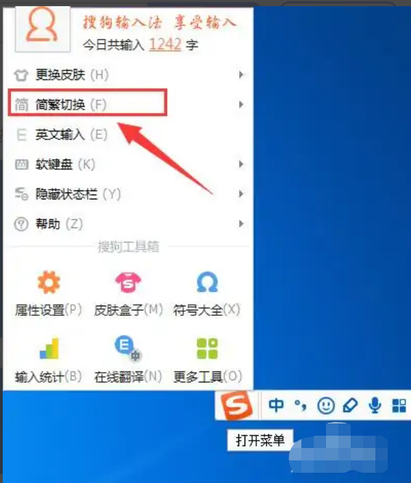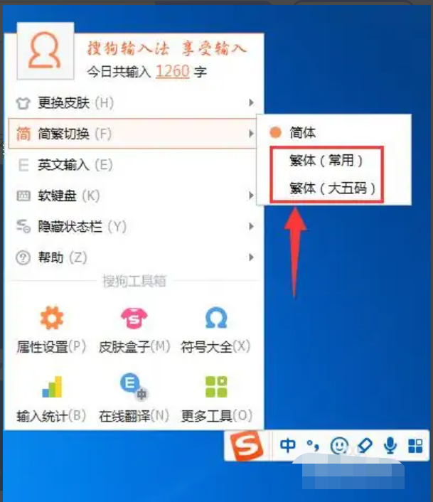 方法一、搜狗输入法怎么打繁体字