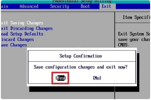 6、选中Exit saving changes(保存更改并退出),按下enter键。