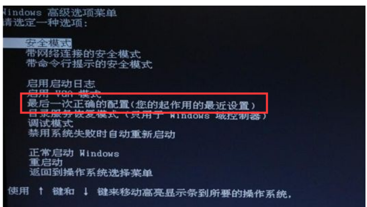 如果尝试重启后不能解决问题那就先关机然后在开机的时候不断按F8键进入系统操作,单选最后一次正确配置来尝试解决黑屏。这个能有效解决驱动冲突或者系统中毒等导致的电脑黑屏问题。