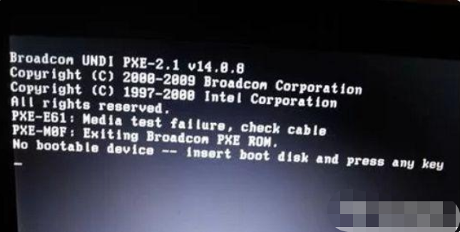 解决方法:故障是电脑找不到启动设备。这时候首先打开机箱盖看一下硬盘的连接线是否正常(电源线和数据线),如果都正常就进入BIOS设置界面,把第一启动项设置为硬盘启动。这样基本上就能解决这类问题。
