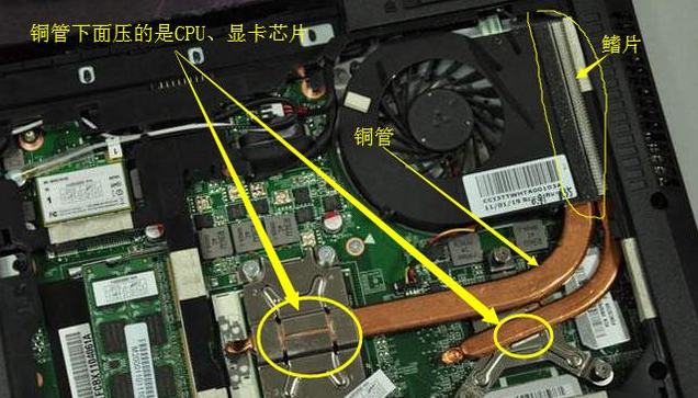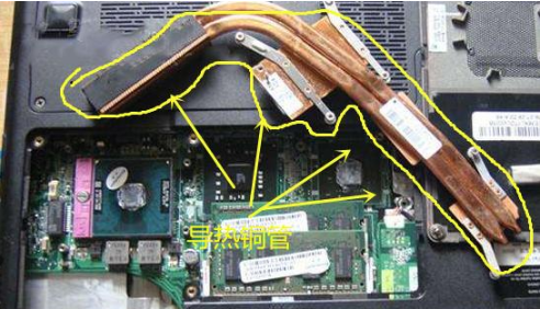 先来我们需要了解一下笔记本的CPU/显卡它们的散热器机理:当CPU/显卡芯片都会有一根或多根导热铜管,芯片由于电脑升温产生热量,热量会迅速的传给铜管,而在导热铜管的另一端会有很多密密麻麻的散热鳍片,此时笔记本内部的风扇会往鳍片上吹风,把热量带走,降低铜管温度,这样形成一个循环!