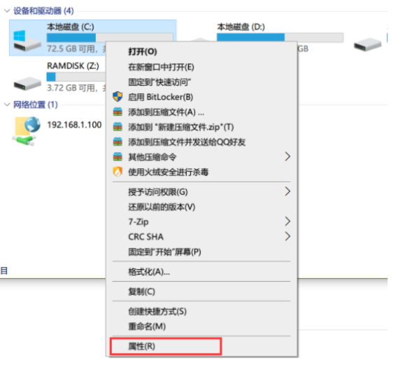 1、打开我的电脑,在C盘上面单击右键,选择“属性”。