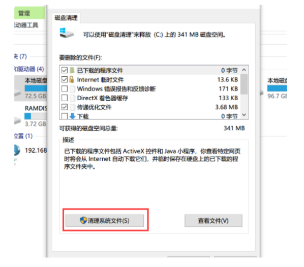 3、点击【清理系统文件】。