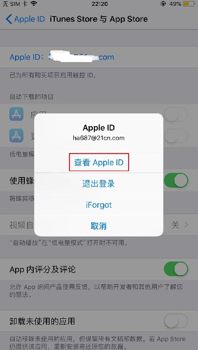 3、接着,我们点击并查看自己手机的apple id。
