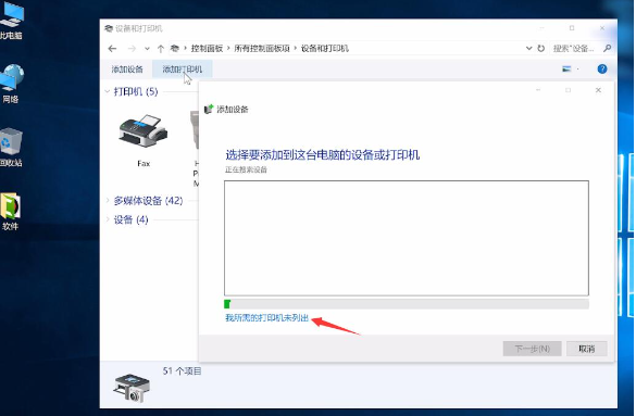 4、点击添加打印机,点击我所需的打印机未列出。