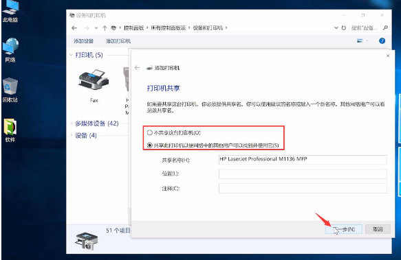 8、默认设置,点击下一步,确认打印机的名称,点击下一步,选择是否要共享这台打印机,点击下一步。