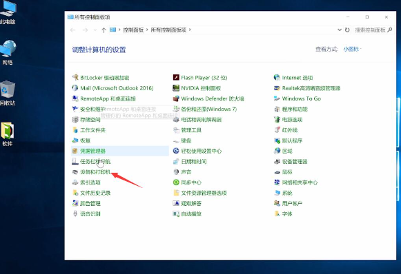 3、在查看方式转为小图标,找到设备和打印机进入。