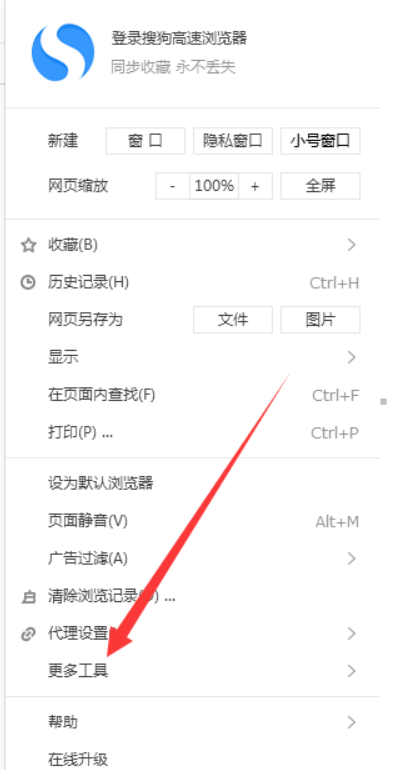 2、然后在弹出来的菜单栏中,选择并点击【更多工具】。