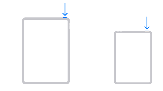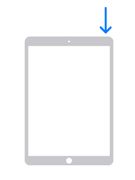 ①如果您的 iPad 没有主屏幕按钮:同时按住任一音量按钮和顶部按钮,直到出现关机滑块。