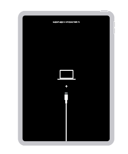 4、按住您所持 iPad 对应的正确按钮,同时立即通过线缆将 iPad 连接到电脑。注意全过程不要松开这个按钮,直到在 iPad 上看到恢复模式屏幕,然后才能松开按钮。(如果您看到密码屏幕,则需要将 iPad 关机并重新开始。如果您无法让 iPad 显示恢复模式屏幕,并且需要协助,请联系 Apple 支持。)