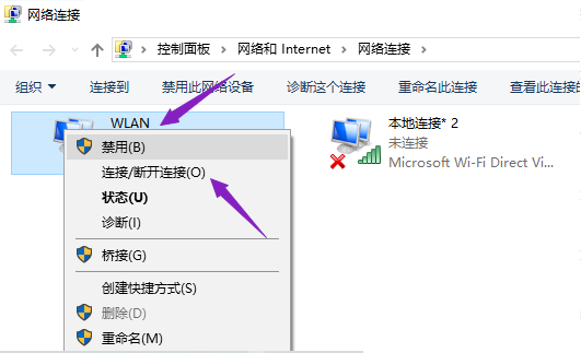 3、右击WLAN,选择连接/断开连接;