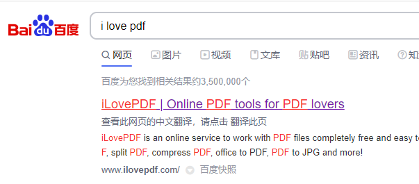 1、浏览器搜索i love pdf并打开第一个网站进入。