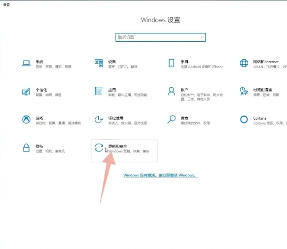 1、打开windows设置,点击更新与安全;