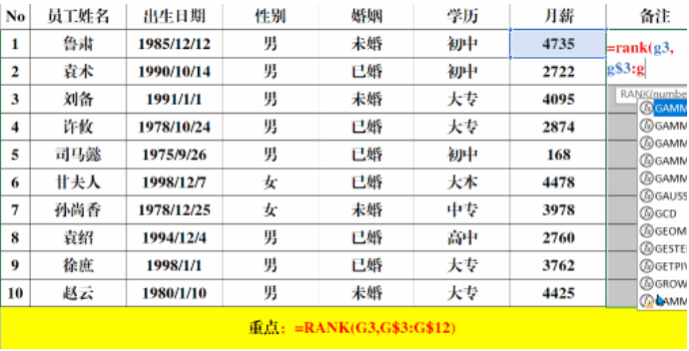 六、Excel函数公式:排名。