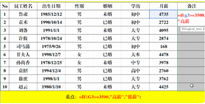 划分等次:=IF(G3>=3500,"高薪","低薪")