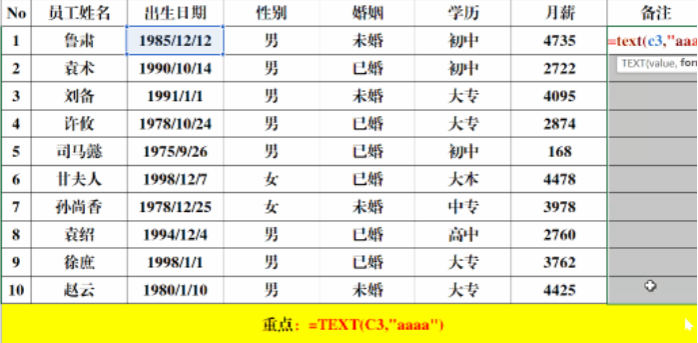 快速地计算出员工【出生日期】对应的星期。