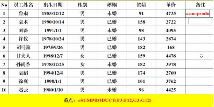 快速计算总金额:=SUMPRODUCT(F3:F12,G3:G12)