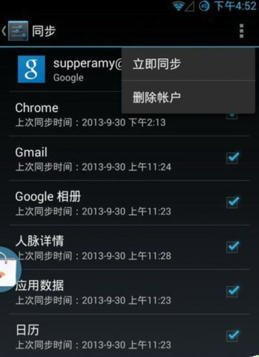 选择已添加的账户,点击menu键调出二级菜单,然后删除账户;