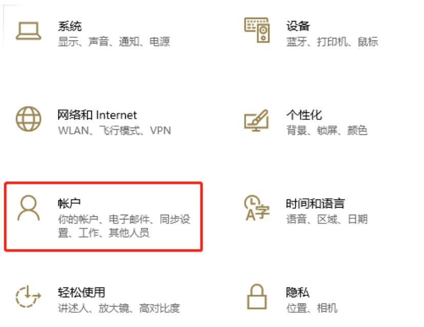 打开Windows设置点击账户;