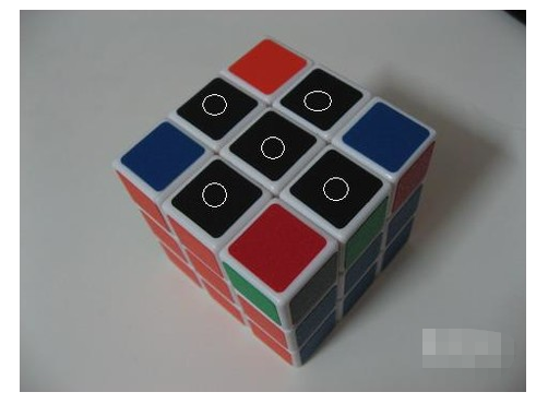 5、四侧面最上面一层的中间的方块与中层的中心块相对应。