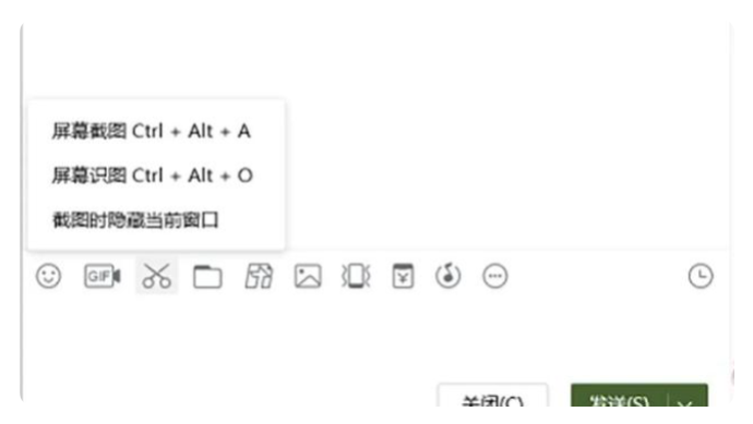 打开微信聊天对话框,点击剪刀工具,按住快捷键alt+a键或shift+alt+a键进行截图。