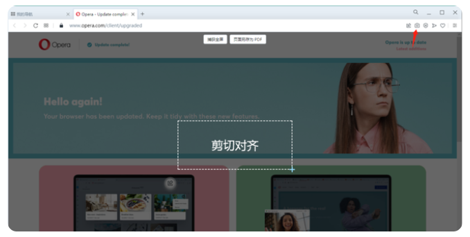 部分浏览器自带截图功能的,直接点击浏览器中的相机或剪刀图标,即可进行截图。