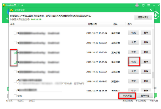 2、我们在木马查杀界面中选择左下角的恢复区。