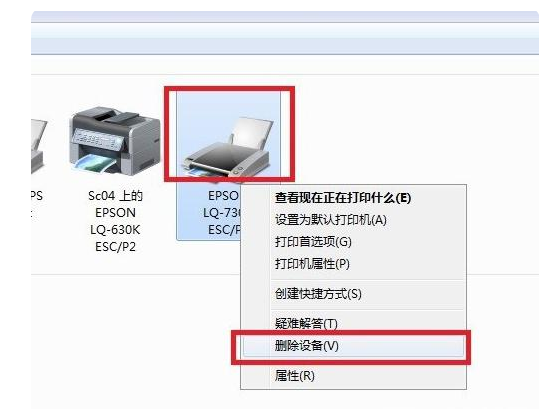 3、若是打印机驱动的问题,建议重新卸载打印机,重新安装。