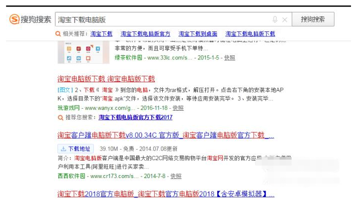 2、显示搜索结果后,选择淘宝电脑版下载,进入链接后点击立即下载。
