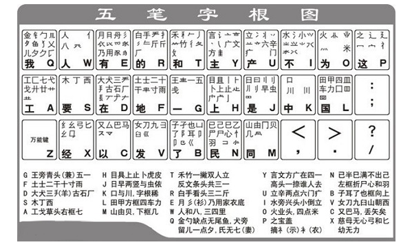 五笔输入法是指把组成所有汉字的笔划都归类成“横、竖、撇、捺、折”五个基本的笔划,然后再用这五种笔划组成所有的汉字,它是中国汉字成为世界上电脑输入速度最快的文字。想要学习五笔输入法首先需要牢记五笔字根图。