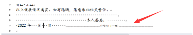3、就可以看到之所以删除不掉,是因为插入了一个分页符,因为界面上始终看不到,所以导致我们无法删除空白页。现在就用鼠标选中这个分节符删掉,这样就删掉空白页了。