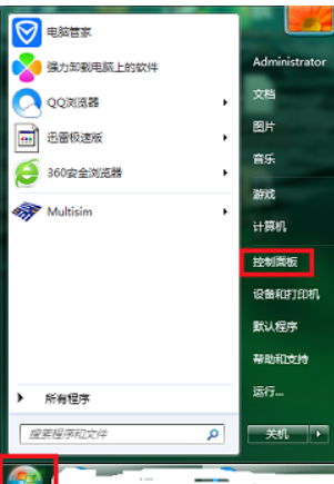 1、点击开始然后打开控制面板。