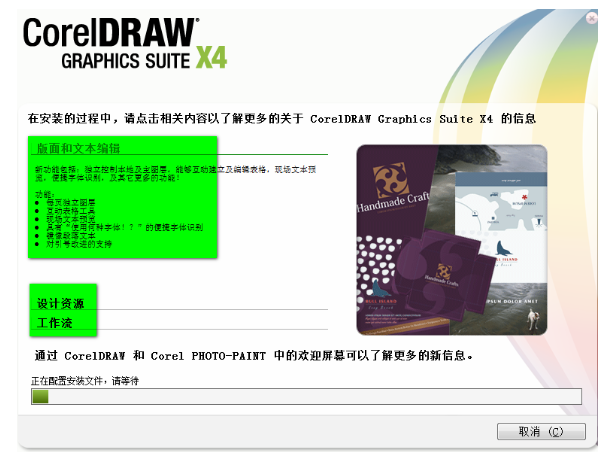 8.随后进入到CorelDraw X4的安装进度条界面,稍作等待。