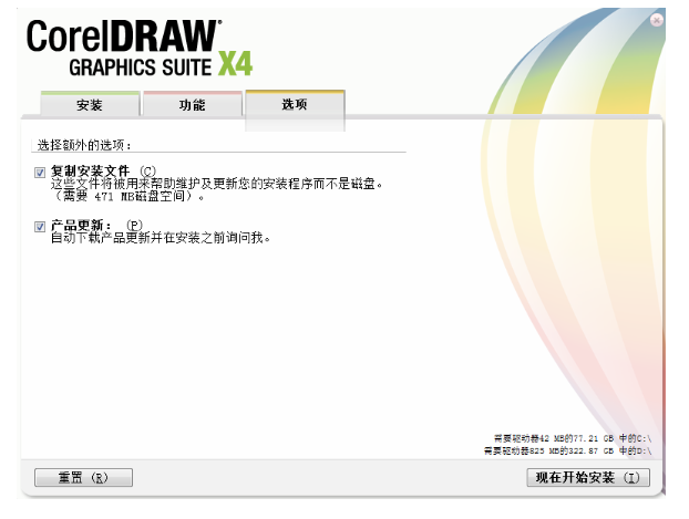 7.设置完功能界面后,进入“选项”界面。这个界面只有两个选项,根据自己需求勾选。设置后我们完后点击【现在开始】安装即可。