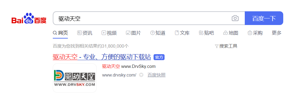 1.在浏览器上搜索驱动天空,在搜索结果中选择并进入官网。