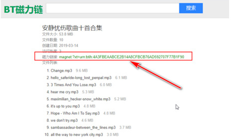 3、没有磁力文件可以自行搜索磁力下载,进入相应网站搜索下载想要的磁力链接。