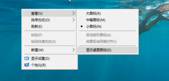 2、选择查看,然后点击显示桌面图标就可以啦。
