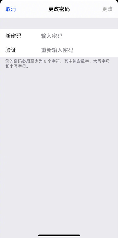 2、点击【更改密码】,重新输入新的设备密码即可,这样就可以输新密码登陆苹果手机。