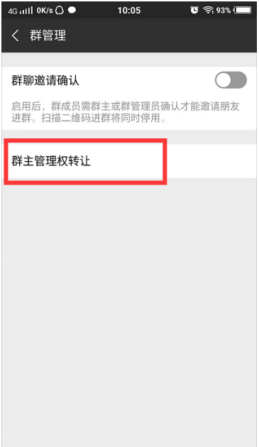 7、选择新的群主(也就是你),选中新群主后会跳出一个会话框“确定选择XXX为新群主,你将自动放弃群主身份。”点击“确定”群主权限就变更完成了。