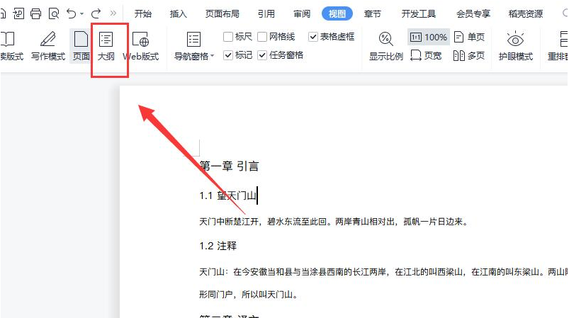2、接着在视图中点击“大纲”。