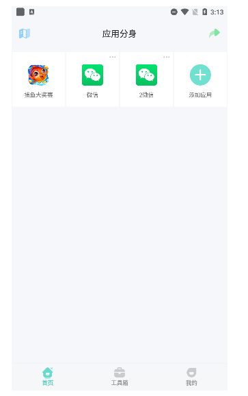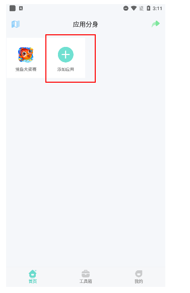 1、下载并打开应用分身,在首页中点击“添加应用”。