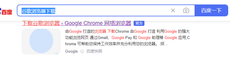 1、首先我们先打开任意的电脑的浏览器搜索“谷歌浏览器下载”,然后注意在结果中找到带有官网标志的地址进入。