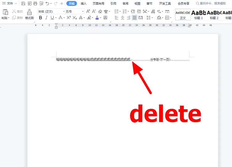 4、我们将光标定位到分隔符位置,按下delete键,就可以删除空白页。