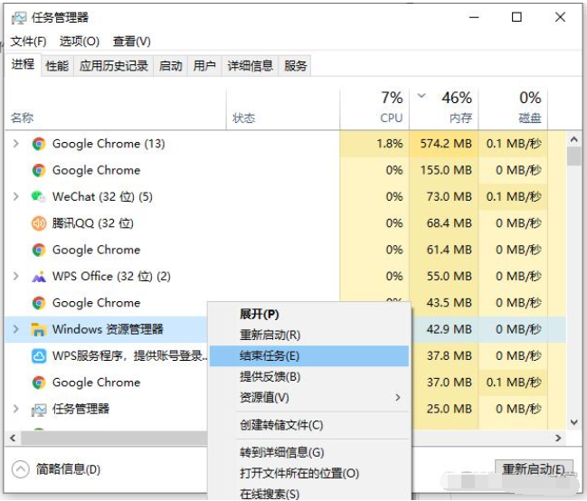 方法一:重启电脑资源管理器