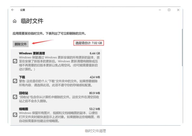 3、进入临时文件,系统自动扫描垃圾文件,勾选需要删除的文件类型。
