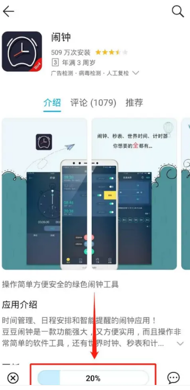 步骤六:耐心等待下载完成,下载手机闹钟就完成啦