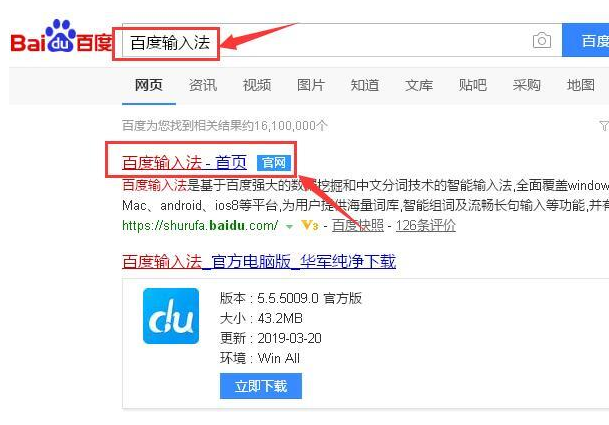 步骤一:这里以百度输入法下载为例,我们首先打开电脑浏览器,在百度搜索“百度输入法”,找到官网下载地址。
