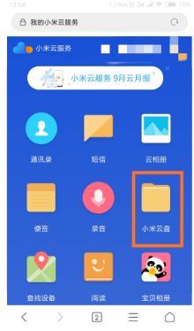 5、点击登录之后,将会来到小米云服务页面,点击小米云盘。