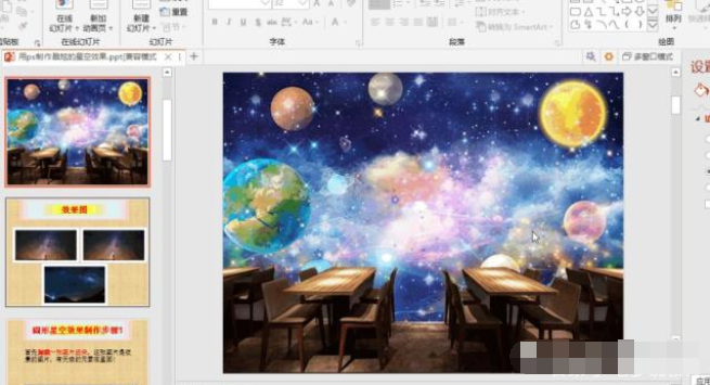 5、这时幻灯片就被换上了新的背景图了。